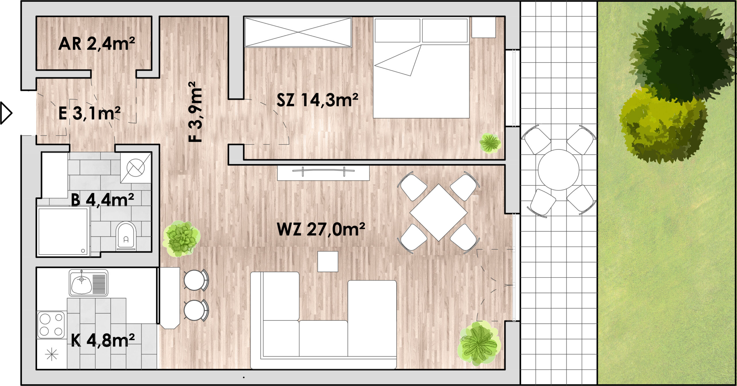 Zur Wohnung gehört auch ein PKW-Stellplatz. Haustiere sind nicht erlaubt.