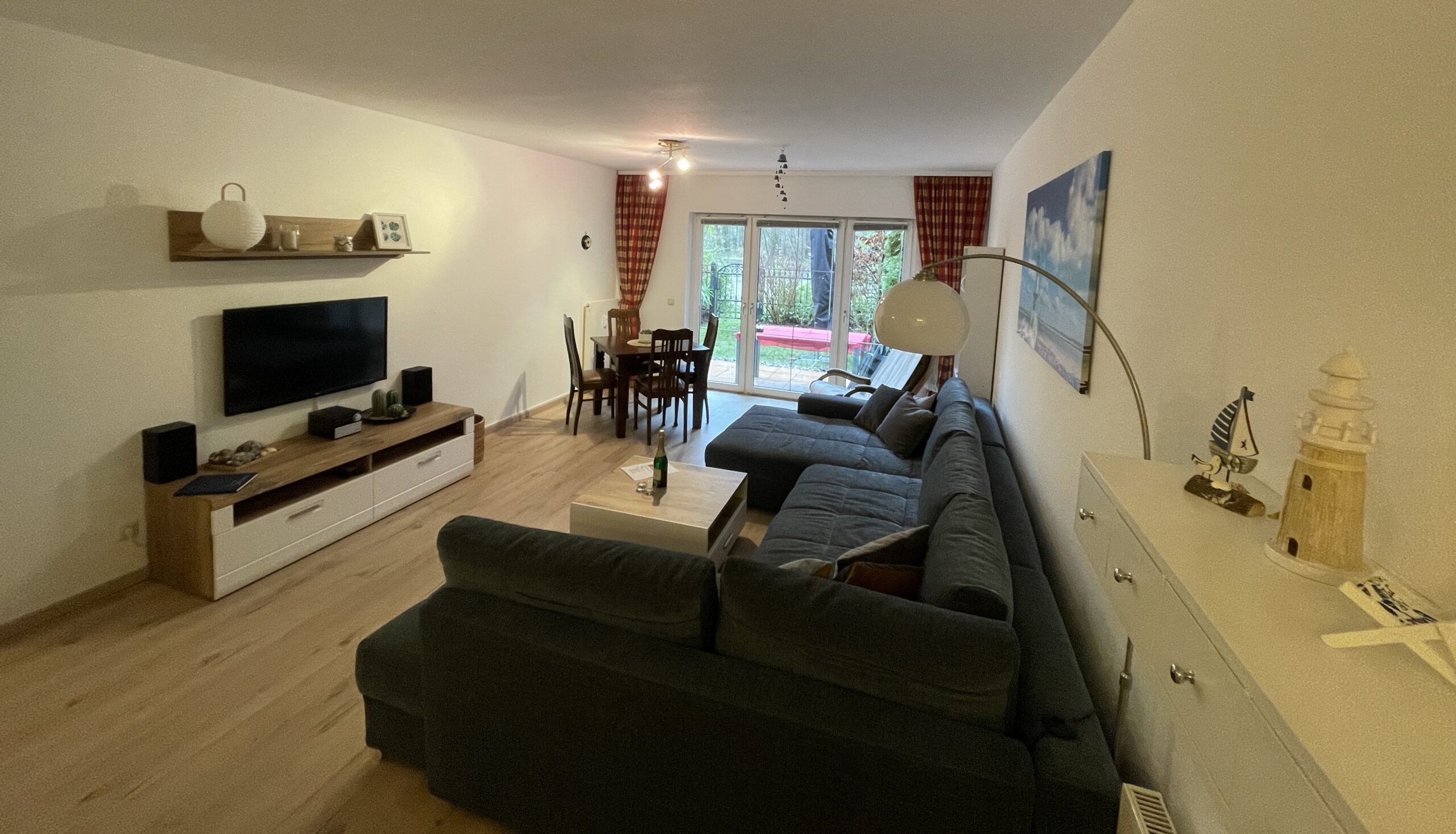 Wohn- und Schlafzimmer sind gemütlich und einladend eingerichtet. Ein komfortables Doppelbett und eine Wohnlandschaft mit Schlaffunktion versprechen erholsame Nächte für bis zu vier Personen. Die Terrasse und der kleine Garten laden zum Sonnenbaden ein!