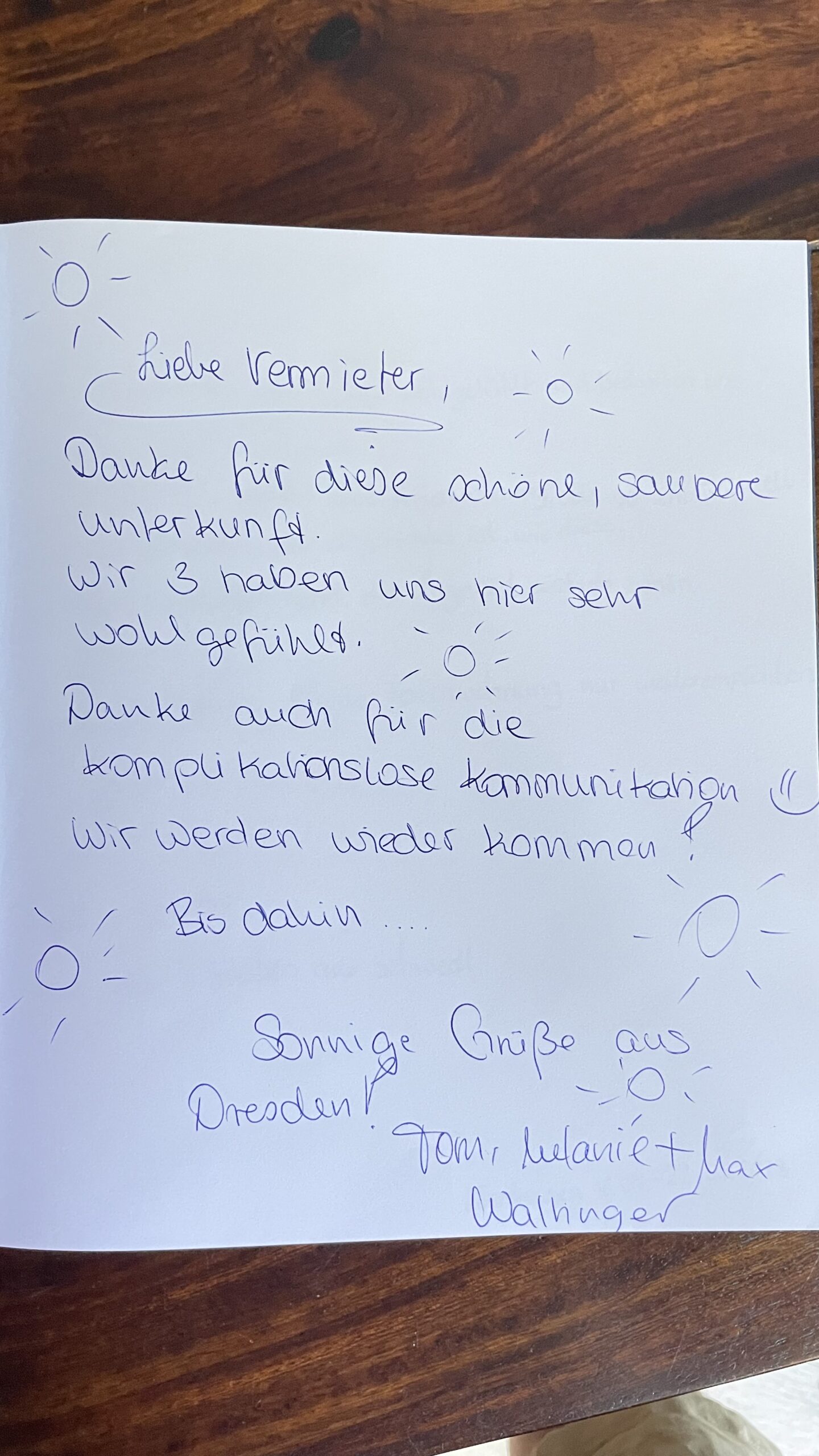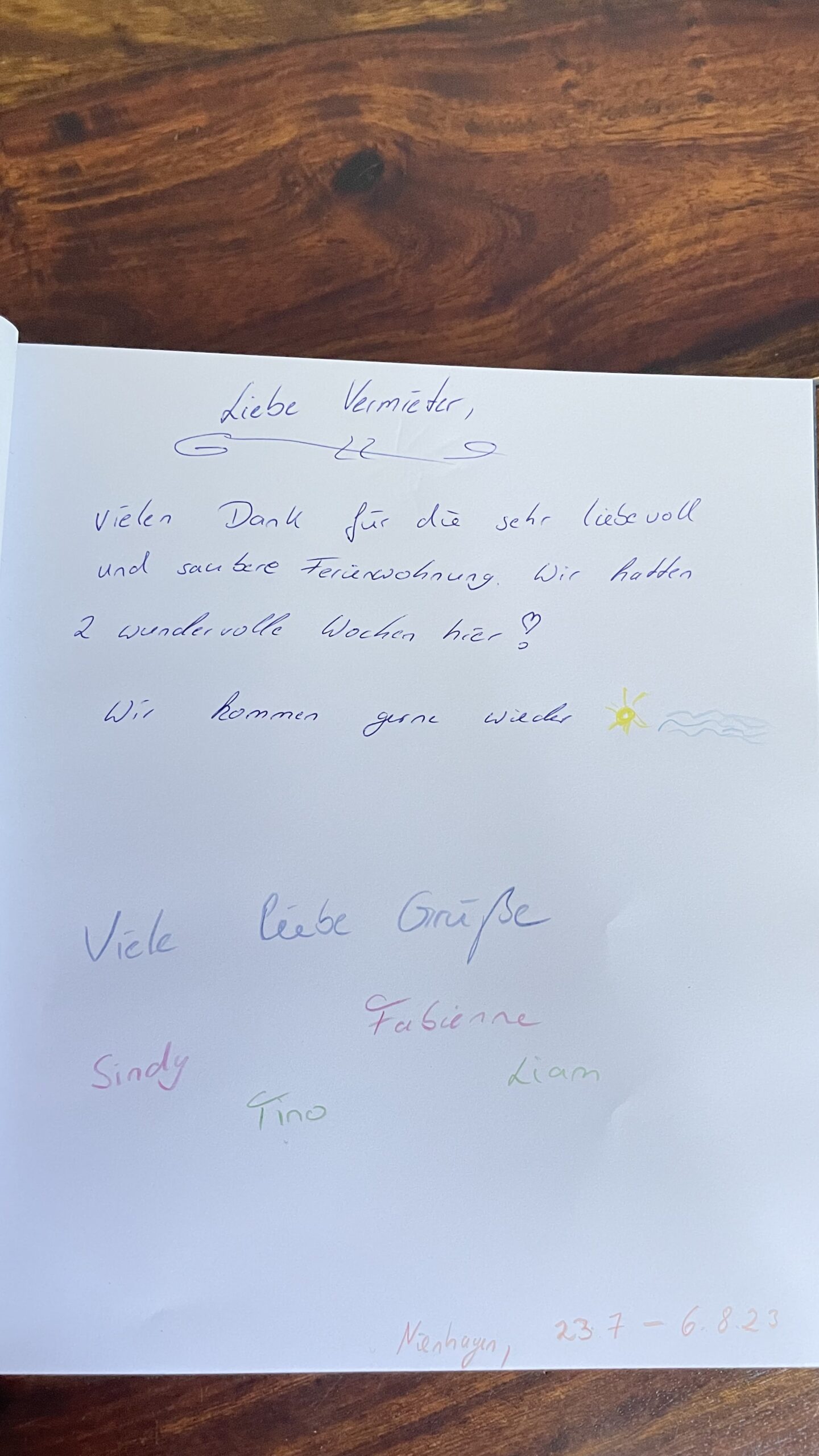 Natürlich kannst du uns auch direkt vor Ort einen Eintrag im Gästebuch hinterlassen. Darüber freuen wir uns sehr! Diese lieben Grüße haben wir bereits von unseren Gästen erhalten. (Im Vollbildmodus öffnen, um alles zu sehen.)